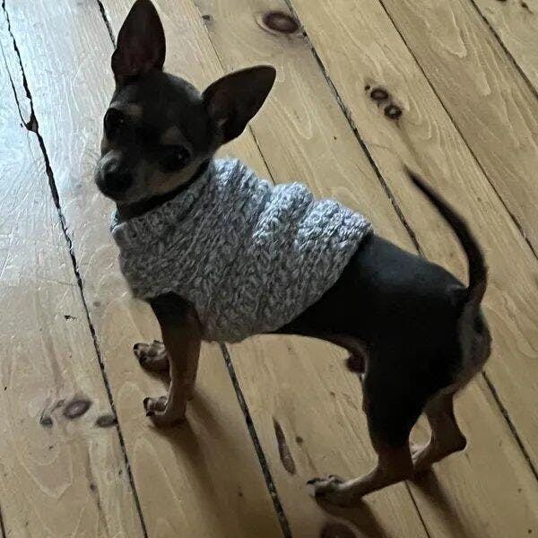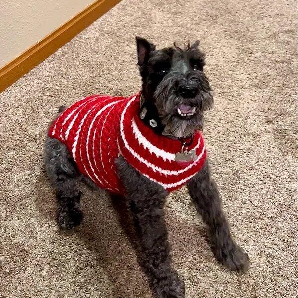 Kittygirl Very easy to follow pattern. My dogs love their sweater. I sized down to a 3 weight yarn and made a smaller one for my tea cup Chihuahua. Now he finally has a sweater that fits well!
